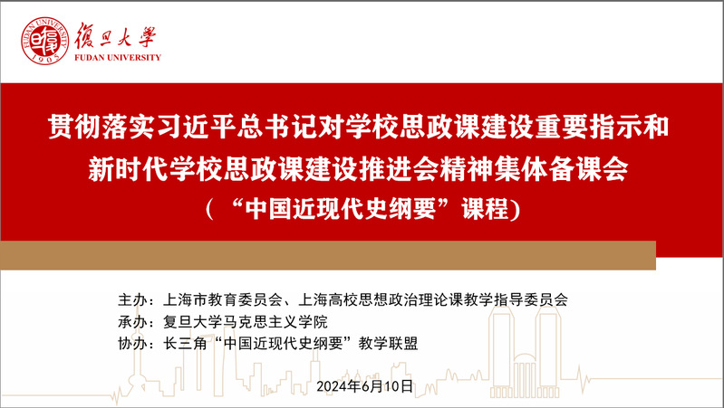 2024年6月10日,为深入贯彻落实习近平总书记对学校思想政治理论课的重要指示和新时代学校思政课建设推进会精神,推动长三角地区“中国近现代史纲要”课程改革创新,由上海市教育委员会、上海高校思想政治理论课教学指导委员会共同主办,bet365体育投注-bet365app下载 承办,长三角“中国近现代史纲要”教学联盟协办的“中国近现代史纲要”课程集体备课会在复旦大学举行。